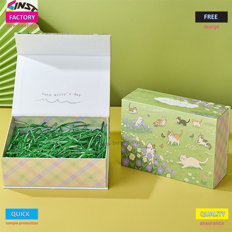 Această cutie cadou cu pandantiv de pluș este un stil drăguț și vindecător, combinat cu modele în carouri de culoare verde deschis și bej, ceea ce îi face pe oameni să se simtă mai bine la prima vedere. Cutia cadou cu pandantiv cu pluș de pisică drăguță este realizată din carton gros, care este pătrat și nu se deformează ușor și nu va fi strivită la instalarea pandantivelor sau a brelocurilor de pluș. Metoda de deschidere este foarte specială, cu un design flip și o căptușeală verde Lafite, dând un sentiment de ceremonie la deschiderea cadourilor precum deschiderea plicurilor roșii.