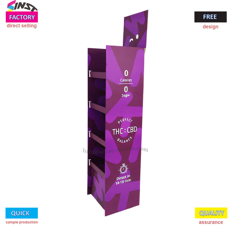 Ce e bun la asta? În primul rând, culoarea este violet strălucitor cu câteva modele jucăușe, care pot fi plasate lângă casierie sau raft și atrage imediat atenția oamenilor; În plus, este împărțit în mai multe straturi, care pot afișa multe articole mici și nu ocupă spațiu, permițând mai multor persoane să vadă aceste articole mici în magazin; Mai mult, acest raft este realizat din carton, ceea ce face economii de costuri si permite magazinelor mici sa achizitioneze fara a-si face griji in privinta banilor; În cele din urmă, aceasta este realizată de o veche fabrică care produce standuri expoziționale de 15 ani. Puteți personaliza orice stil doriți și îl puteți pregăti rapid pentru comenzi urgente sau producție de mostre. Nu aveți nevoie de unelte pentru a-l asambla, ceea ce este deosebit de convenabil.